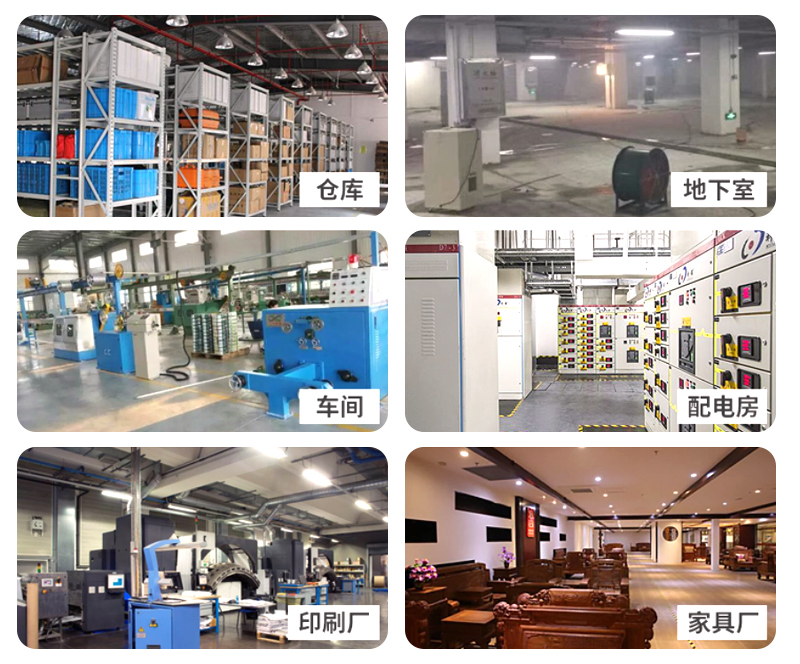比如生產車間、圖書文教、卷煙車間和倉庫、冷庫、電力設備、檔案室、皮革制品糧油制品、印刷制品、音像制品、通訊設備、物資倉庫、煙草制品、藥品儲藏、地下工程等工業領域。